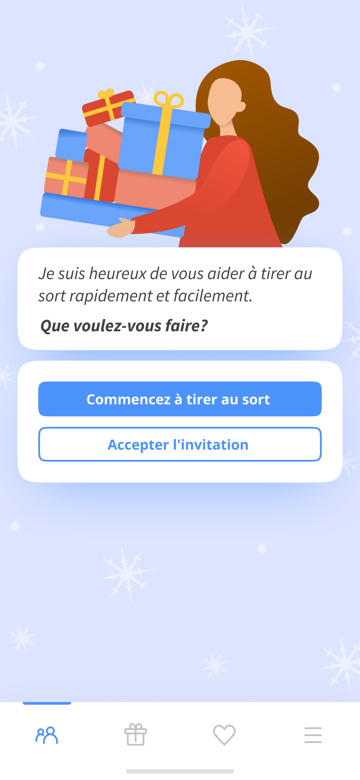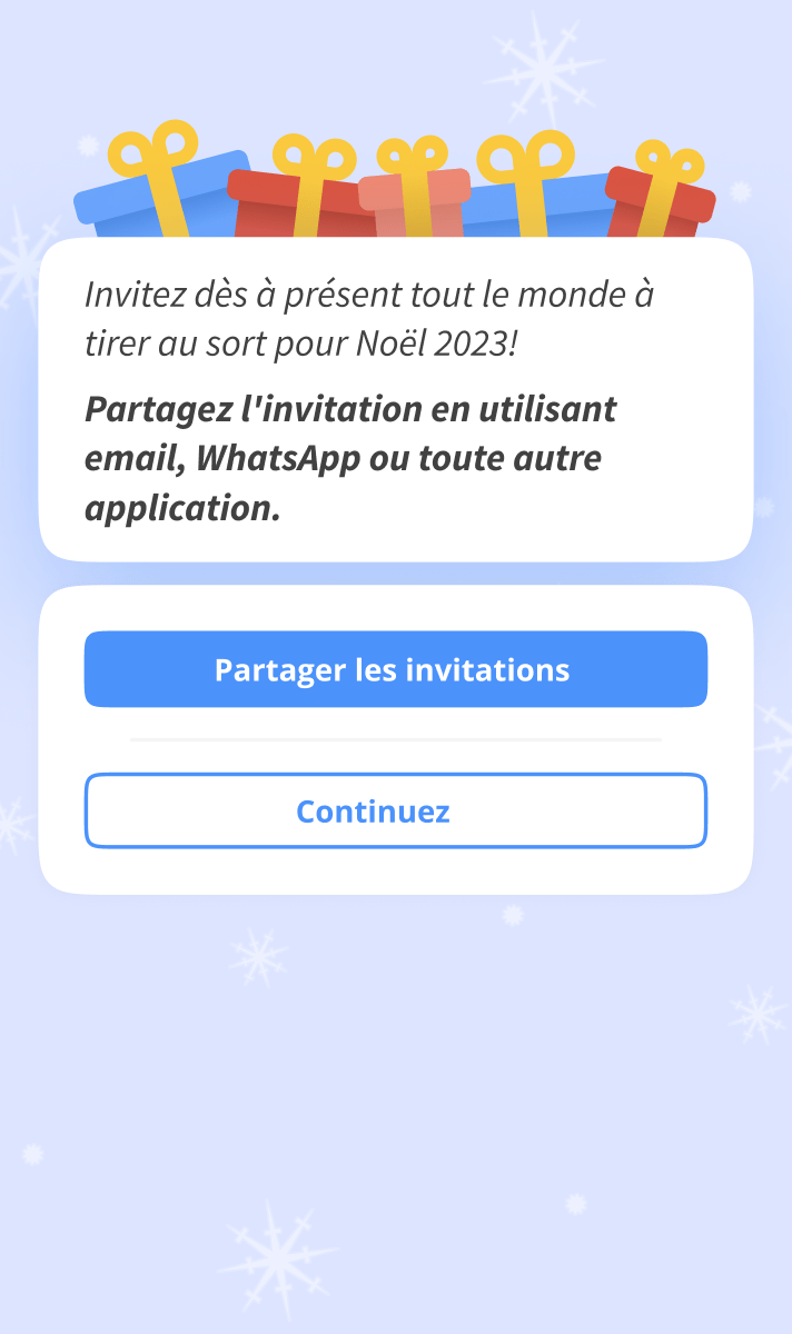 Invitez vos amis, votre famille, vos camarades de classe ou vos collègues et effectuez un tirage au sort avec l'application drawnames Secret Santa.