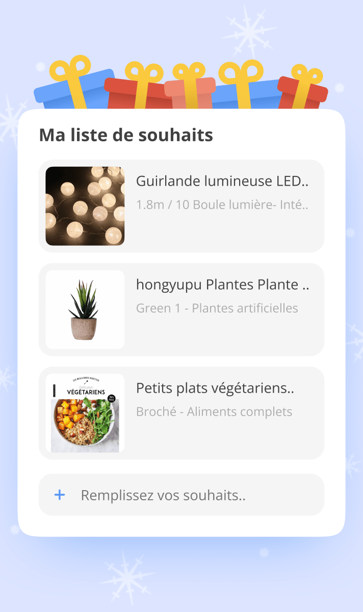 - Avec listes de souhaits et outil de recherche de cadeaux